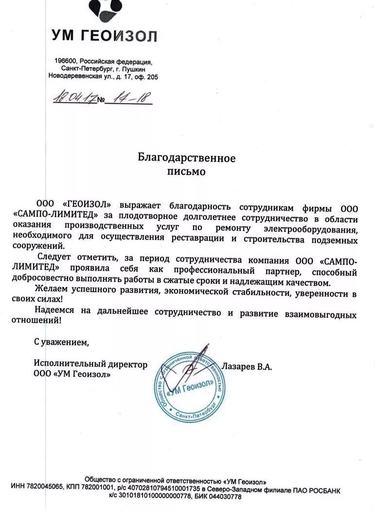 ООО «САМПО-ЛИМИТЕД» 25 лет занимается ремонтом промышленного электрооборудования. За это время специалисты накопили знания и опыт, позволяющие успешно решать задачи любой сложности.