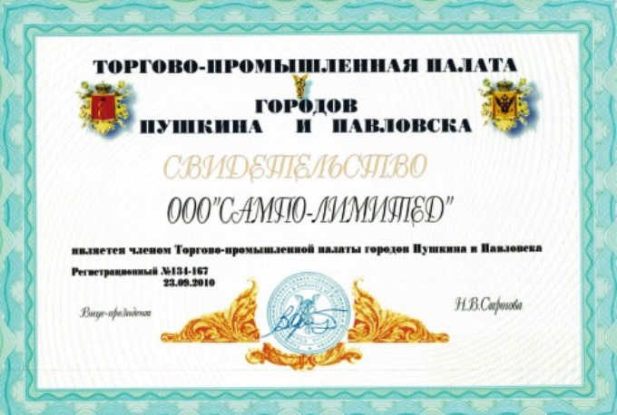 - В 2010 году ООО «САМПО-ЛИМИТЕД» становится членом Торгово-промышленной палаты городов Пушкина и Павловска подробнее о награде.