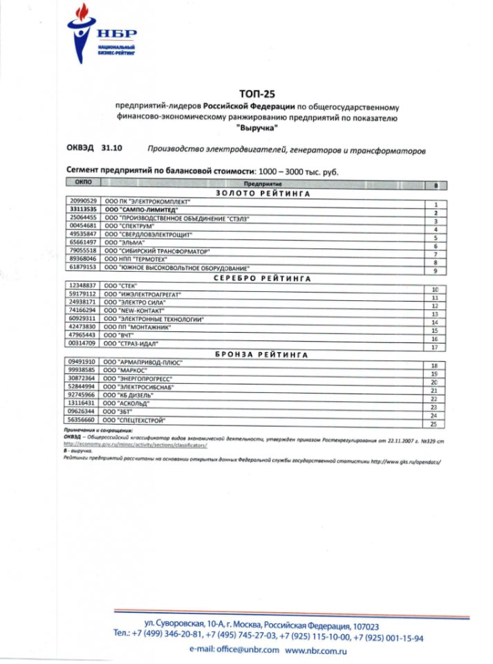 - ООО «САМПО-ЛИМИТЕД» входит в ТОП-25 предприятий-лидеров Российской Федерации по общегосударственному финансово-экономическому ранжирования предприятий по показателю «Выручка» подробнее о награде.