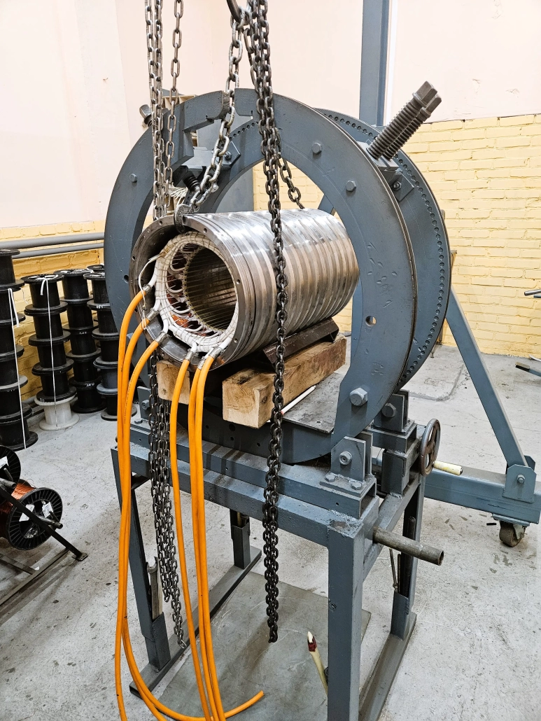 - Пропитка: покрытие обмоток и активного железа электротехническим лаком в вакуумной установке для улучшения изоляционных свойств и механической прочности.
